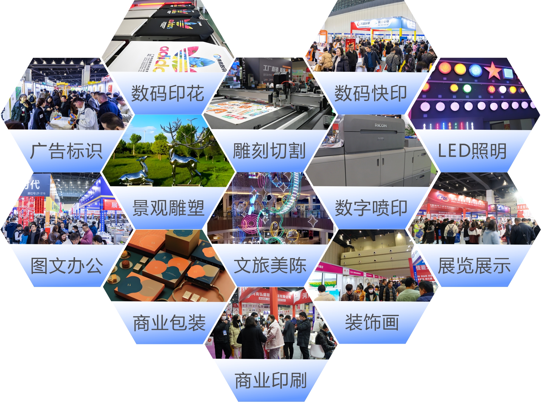 展會展品范圍涵蓋了廣告標識、LED照明、噴印、印花、雕刻切割、圖文辦公、商業(yè)印刷與包裝、數碼快印、影像、裝飾畫與框業(yè),為眾多品牌進入河南及中北部市場提供了機遇,更為河南及中北部市場帶來了全球采購的絕佳平臺。